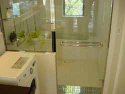 浴室はシステムバスではなく、タイル張りのガラスドアです。