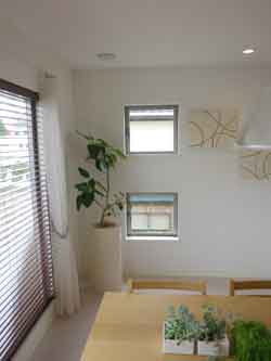 左下:はめころし窓…2階リビング奥に正方形に二段配置されています。