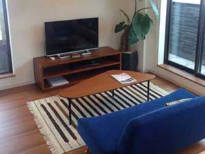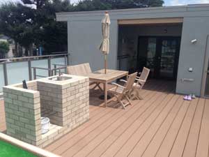 | 賃貸フロアのLDもコンパクトながら意外に広々。ルーフバルコニーから屋上に出れば、専用グリルが併設されており、ガーデンパーティーもできそうな雰囲気でした。 |